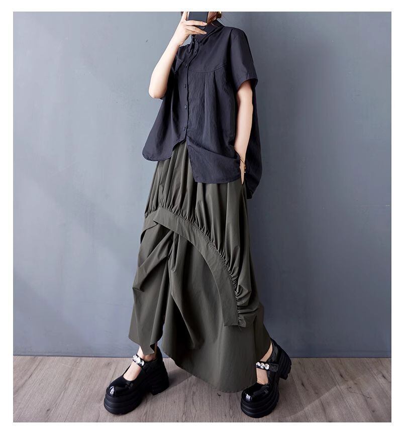 【EEOOOJP】モード系 新しいスタイル 個性 ニッチなデザイン 不規則 韓国風 ファッション プリーツスカート レディースカジュアル トレンディ クール ニューデザイン 弾性スカート