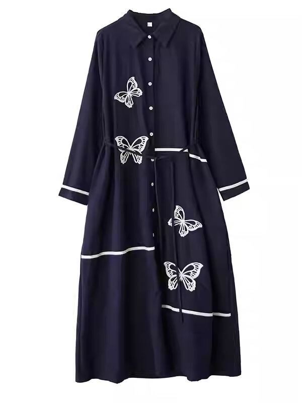 【EEOOOJP】【希少!】モード系 個性的なデザイン 春新作 ゆったり 文芸デザイン ニッチ ファッション 刺繍 つなぎ スリム 気質 シャツワンピース