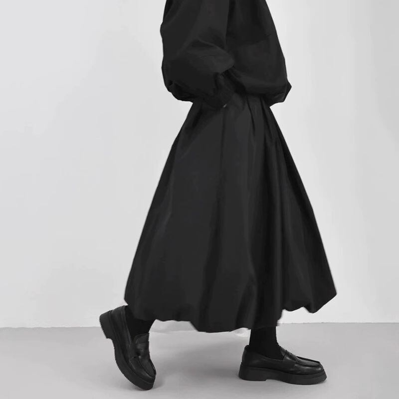 【EEOOOJP】モード系 ダーク ブラックスカート 春新作 パンプキンスカート ゆったり スリム 花蕾スカート 大きいサイズ ミディアム丈 ワイド スイングスカート