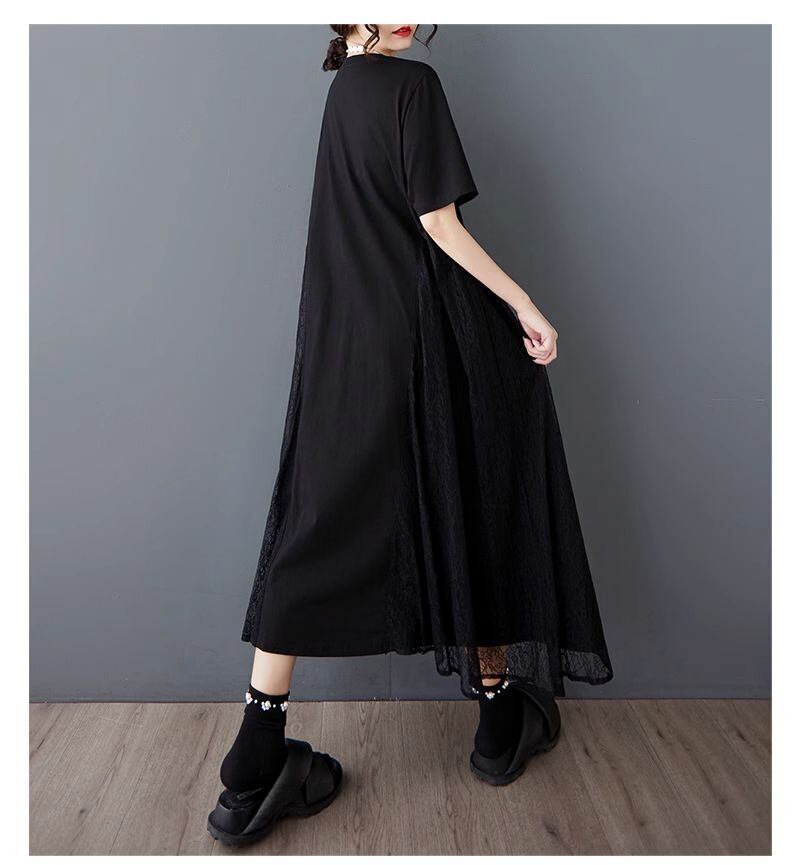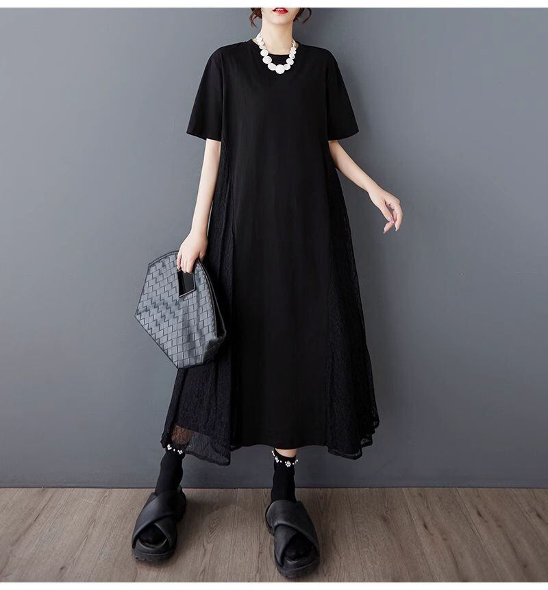 【EEOOOJP】モード系 売れ筋ワンピース 新作 夏ゆったり メッシュ 上品ワンピース 無地 レース つなぎ ロングスカート 個性派 ドレス