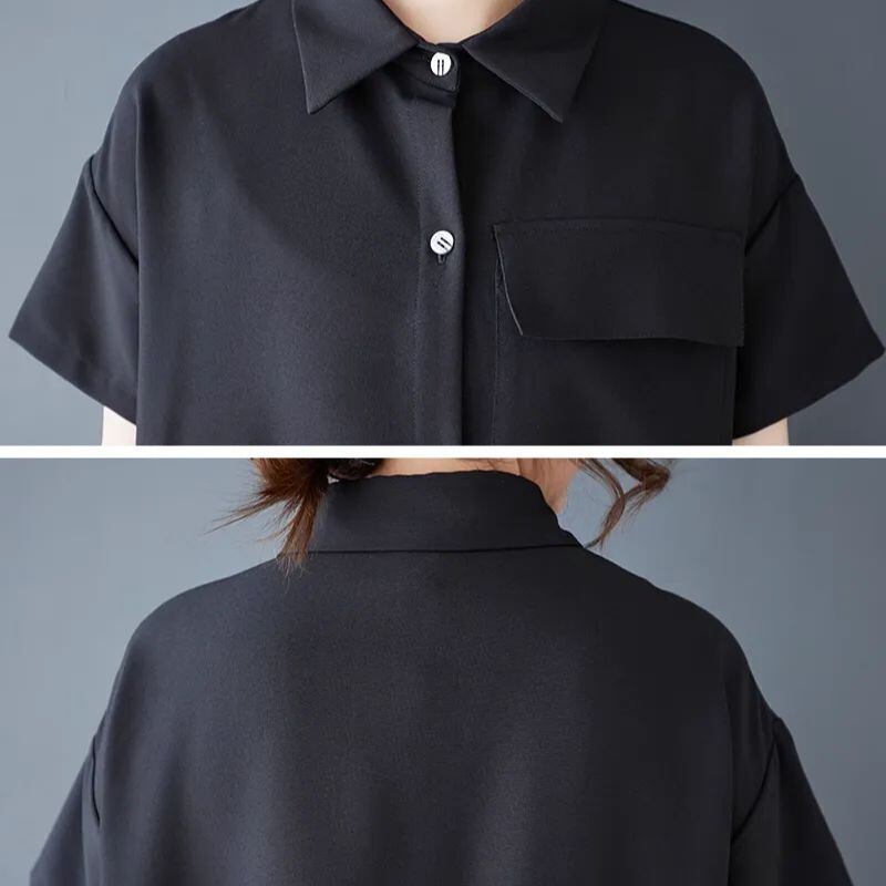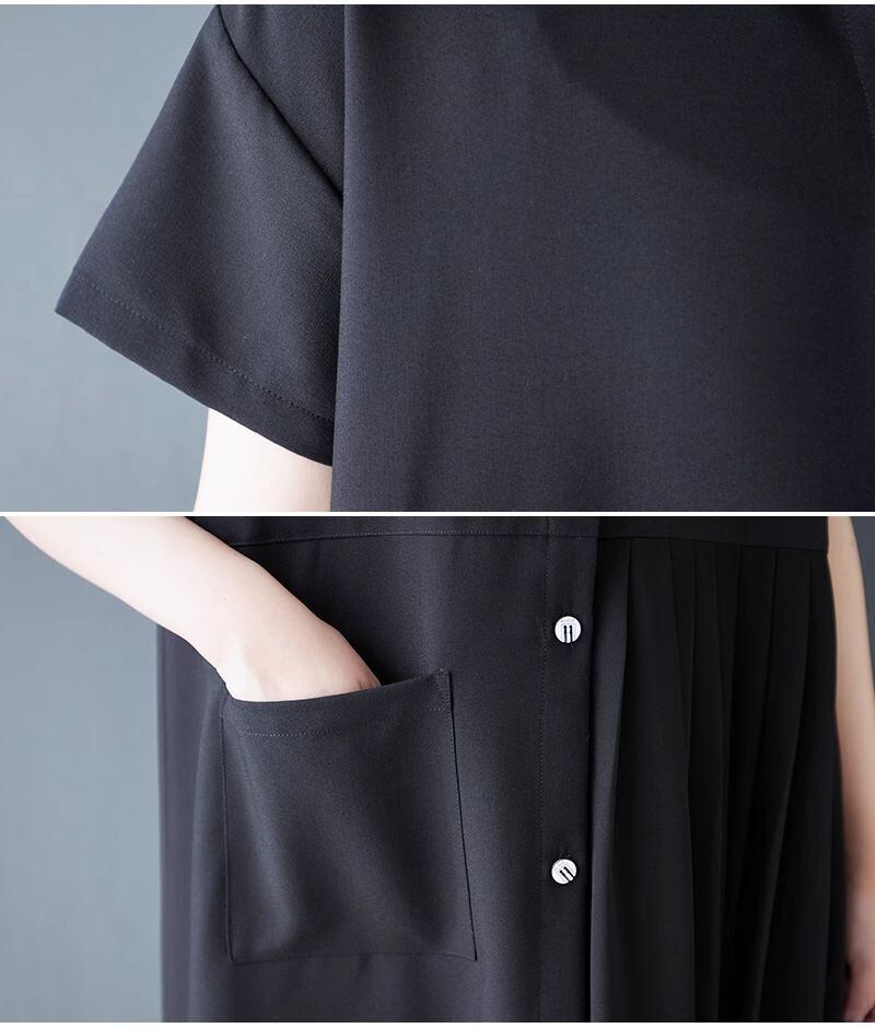 【EEOOOJP】モード系 ロングドレス 新作 夏 黒 高級ステッチ アイアムアイ コムデギャルソン イマココニ ゆったり スリム 大きいサイズ プリーツ シャツドレス