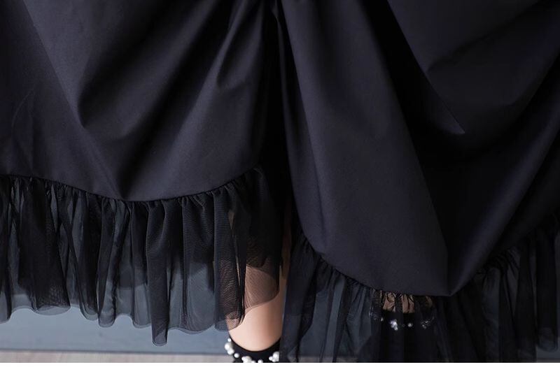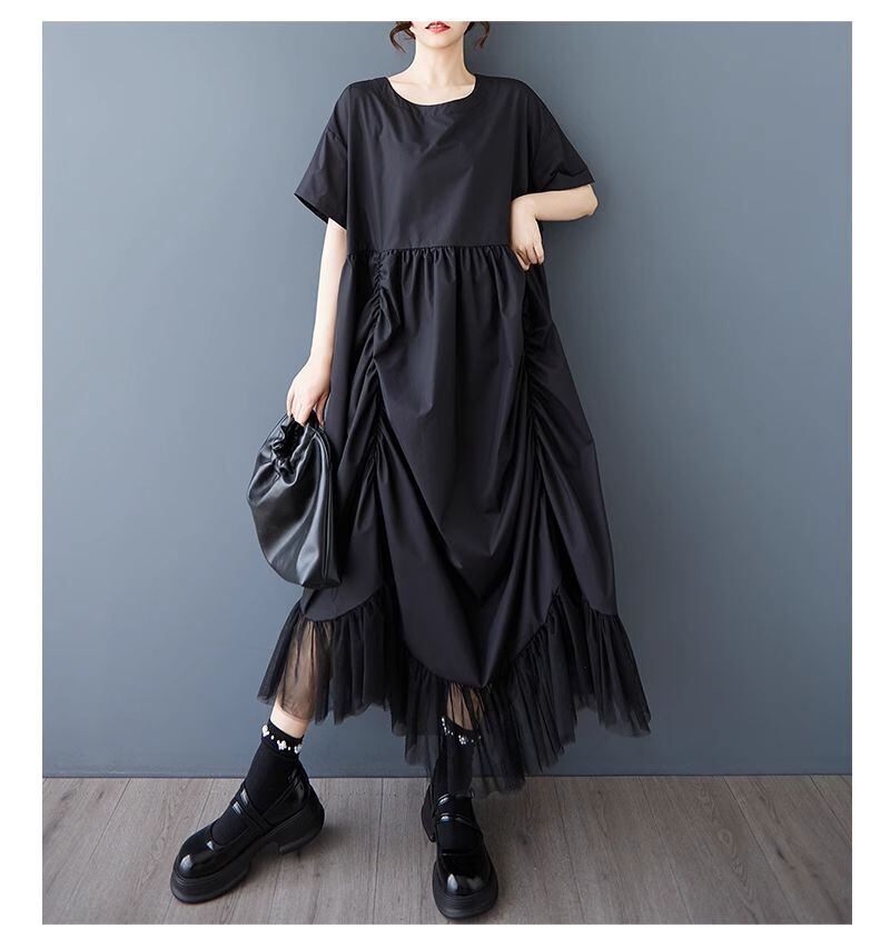 【EEOOOJP】モード系 ニッチなデザイン ドレス 夏 新作 ファッション プリーツ ルーズ スプライシング メッシュ 不規則 ロングスカート