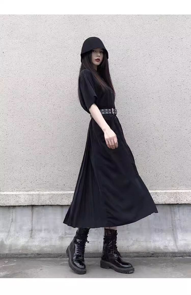 【EEOOOJP】【希少】モード系 レディース 夏用 ブラック アイアムアイ コムデギャルソン イマココニ 長袖シャツワンピ ハイグレード ステッチロングドレス ゆったり スリム 大きいサイズ プリーツシャツドレス 個性派