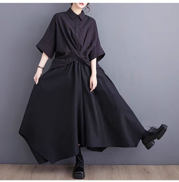 【EEOOOJP】モード系 ワイドパンツ レディース 不規則 ガウチョパンツ 長ズボン ウエストゴム 薄手 ゆったり 体型カバー ポケット付き 通勤 通学 春 夏 秋