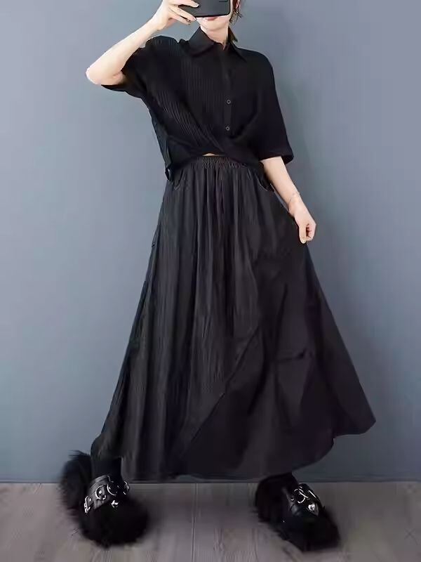【EEOOOJP】モード系 ニッチデザイン スカート レディース 夏 デニム レトロ スプライシング カジュアル オールマッチ Aラインスカート