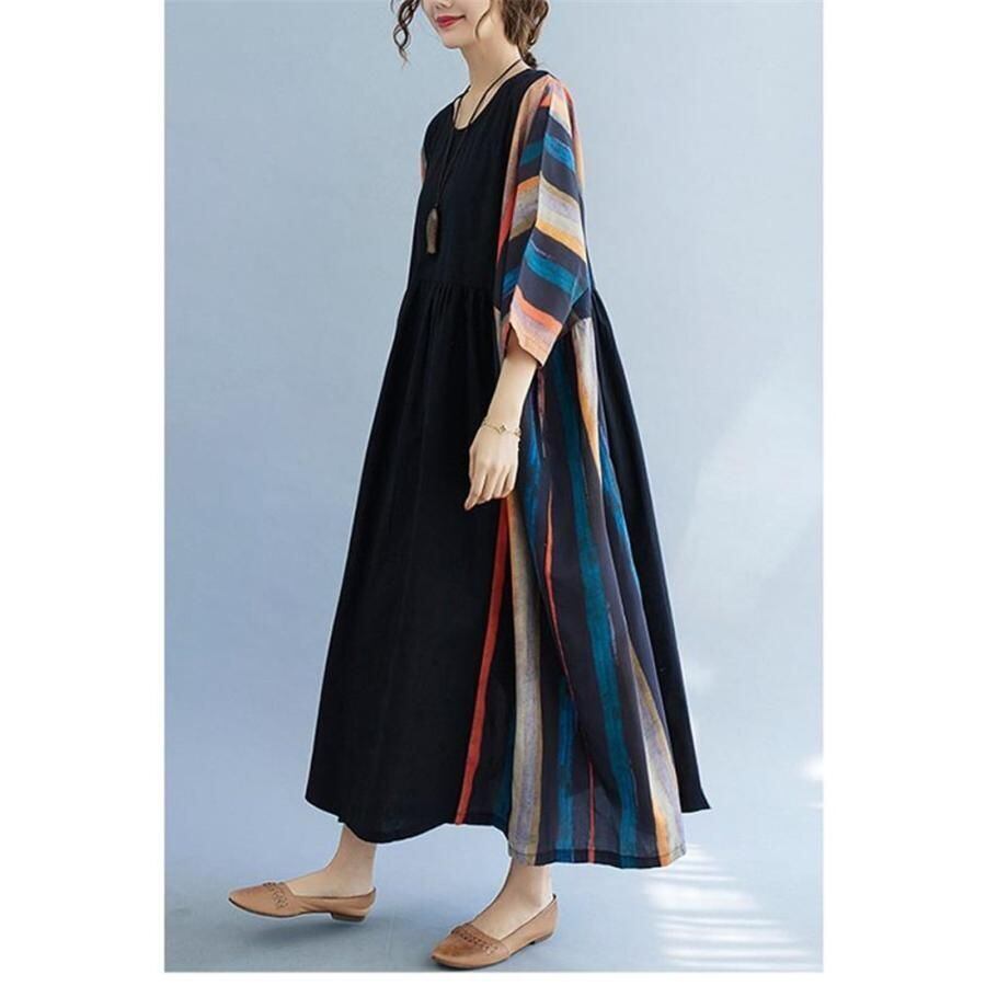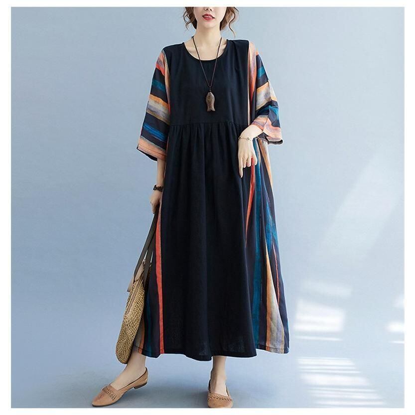 【EEOOOJP】モード系 ワンピース レディース リネンワンピース 個性 丸首 マキシワンピース オーバーサイズ 大人っぽい着こなし ラクでオシャレ 夏物 おすすめ 夏 ロングワンピース