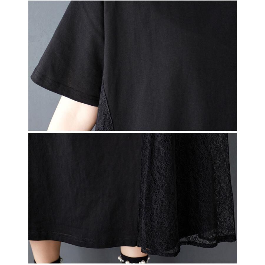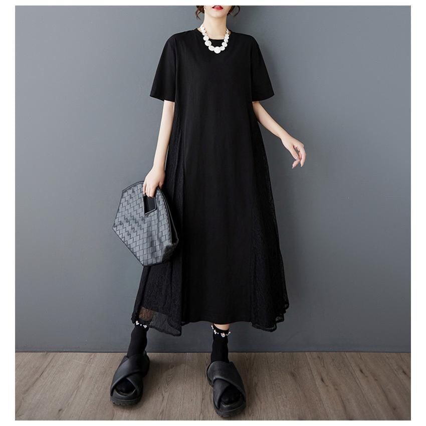【EEOOOJP】モード系 人気ワンピース レディース ロング丈 半袖 大きいサイズ レース すっきりした印象 ゆったりしたシルエット ボリューム感がありながらも軽やかな雰囲気