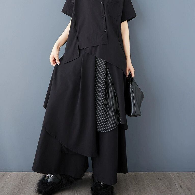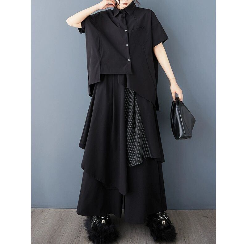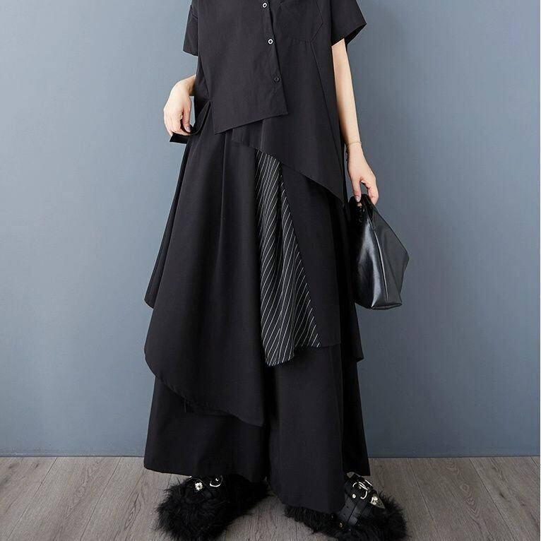 【EEOOOJP】モード系 オンでもオフでも使える 履き心地が良い エラスティック 個性派 ウエスト レイヤーフラップ ワイドレッグパンツ