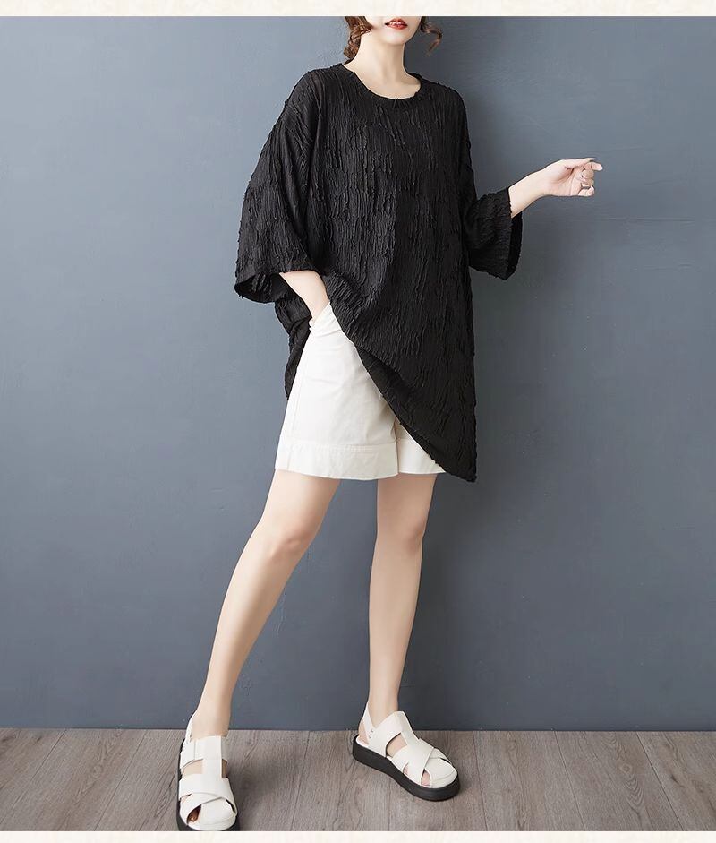 【EEOOOJP】モード系 ヨーロッパデザイン 半袖Tシャツ 夏 大きいサイズ ミディアム ロング ヒップホールカバー トップス