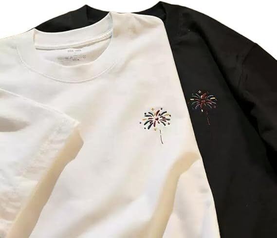 【EEOOOJP】刺繍シャツ 花火 ペアルック カップルTシャツ ユニセックスTシャツ ししゅう 花火大会 ペアルック 花火刺繍入り