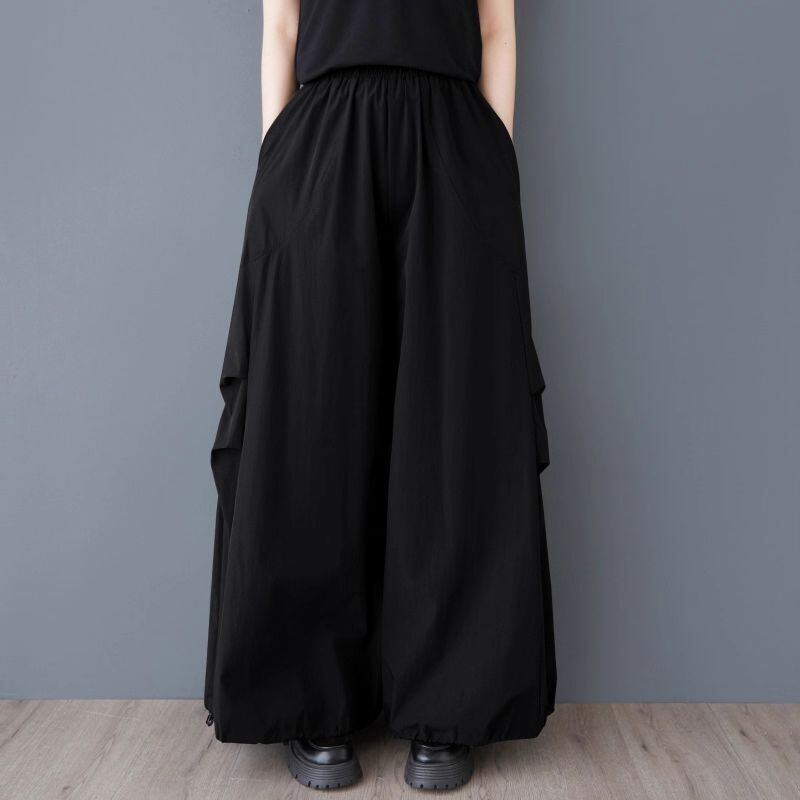 【EEOOOJP】モード系 個性的なデザイン ゆったり ワイド 春と夏のデザイン プリーツ ドロース トリングパンツ カジュアルパンツ ハイウエスト スリムストレート ワイドレッグパンツ パンツスカート