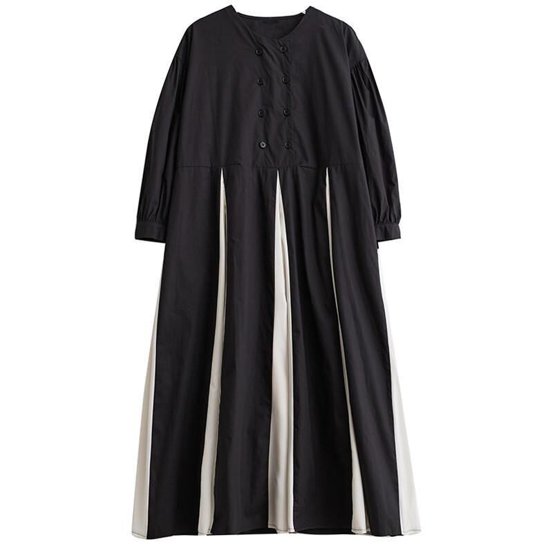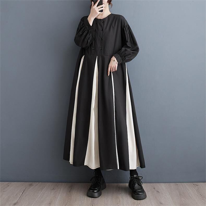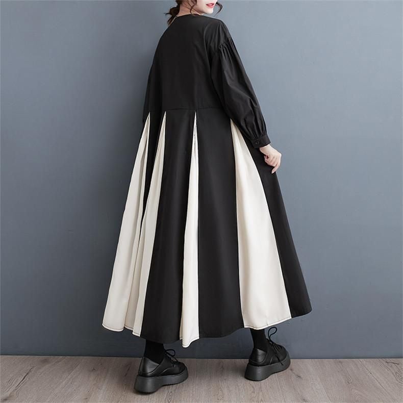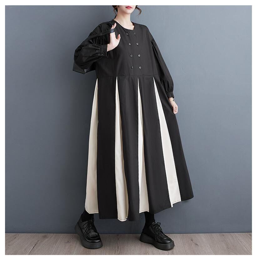 【EEOOOJP】モード系 着こなしが楽しめる プリーツワンピース 可愛い ワンピース 個性 レディース 秋冬 ロング丈 長袖 無地 長いシーズン使えるアイテム ほど良くゆるいシルエット