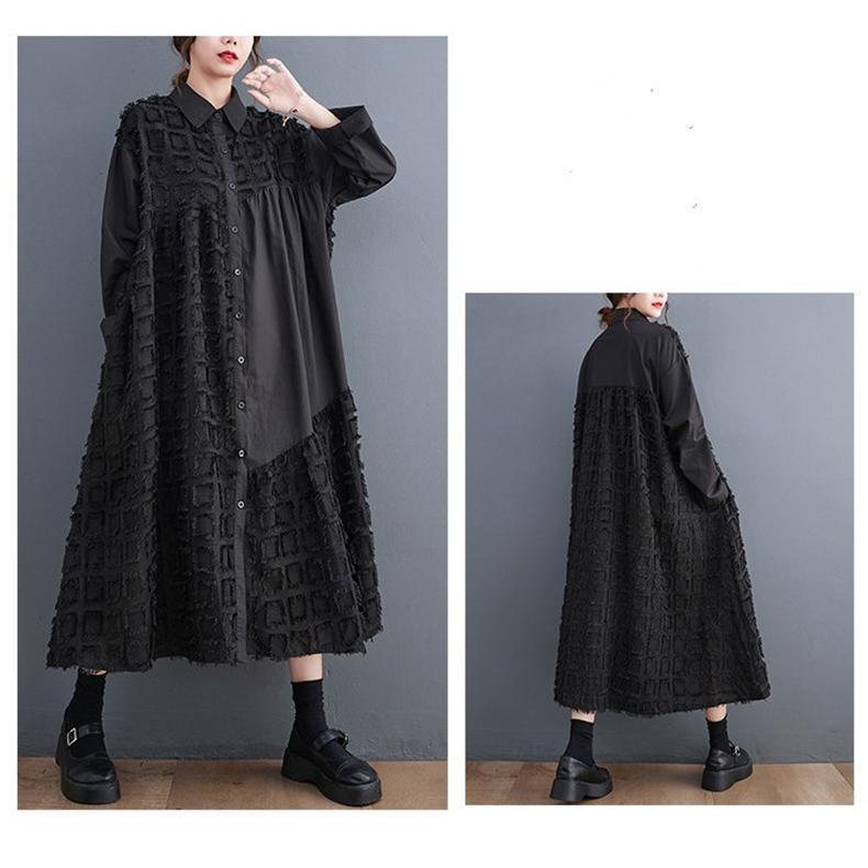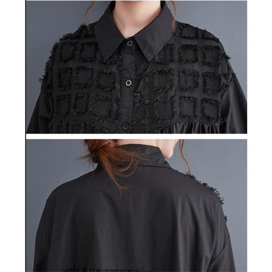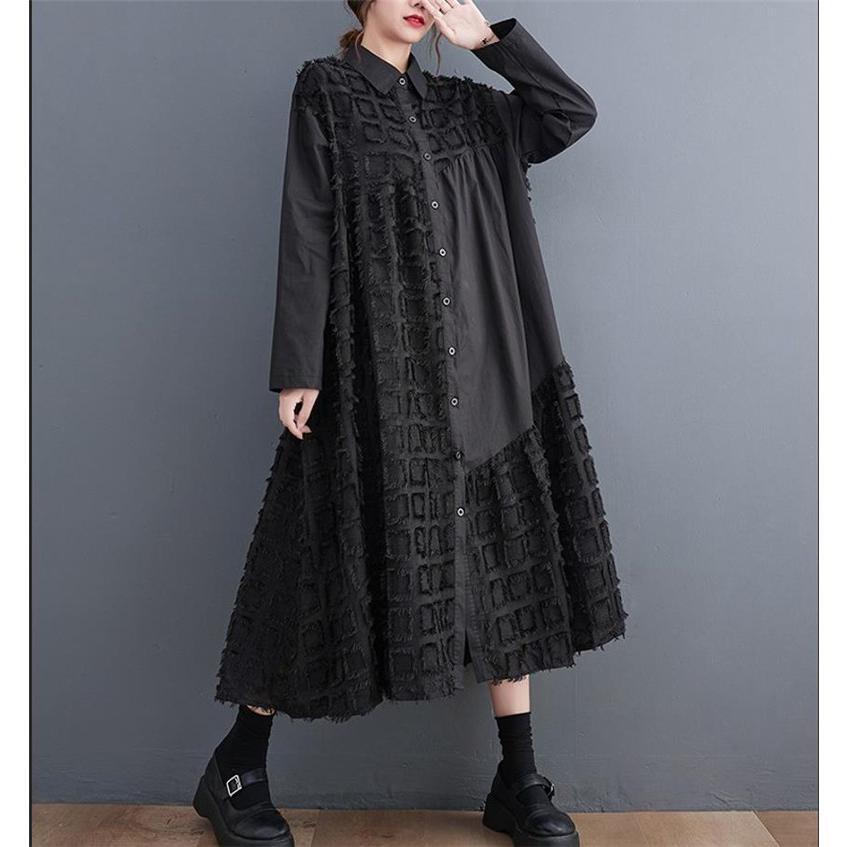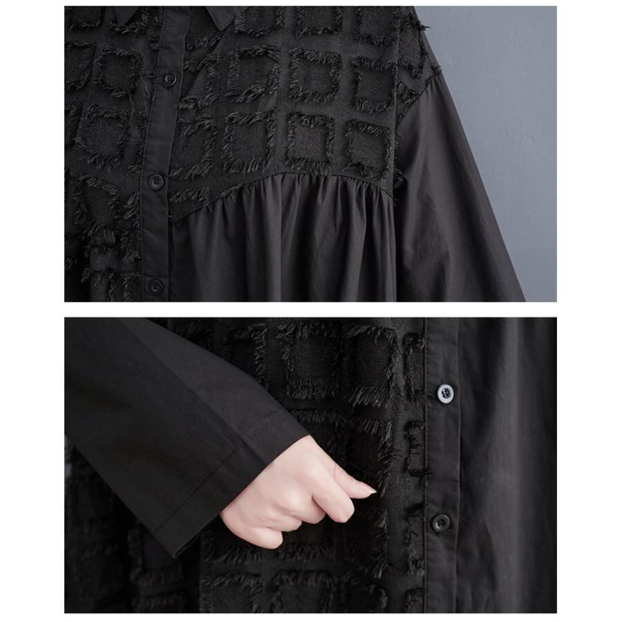 【EEOOOJP】シャツワンピース 長袖 ロング丈 切り替え 前開き レディース 前ボタン留め 折り襟 ゆったりシルエット 大人のこなれ感漂う 今っぽくお洒落にキマる