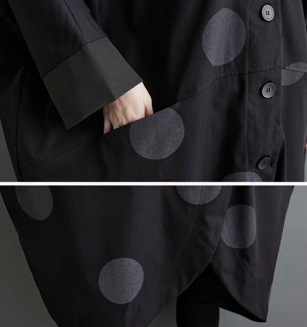 【EEOOOJP】モード系 ドット膝丈ドルマンコートブラックorカーキ