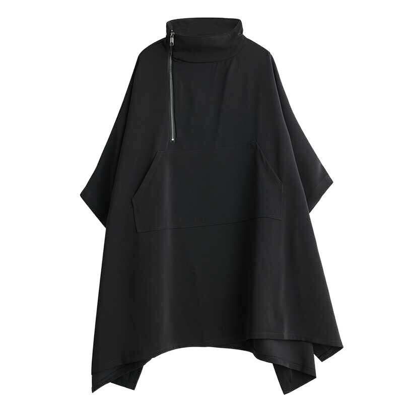【EEOOOJP】モード系 秋冬新品 マント風 体型カバーチュニック ブラウス ワンピース風 トップス 大きいサイズ レディース パーカー