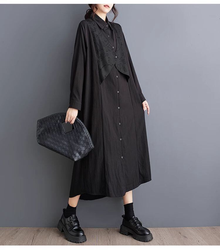 【EEOOOJP】モード系 大きいサイズ 秋 新型 個性 ファッション ゆったり パッチワーク カジュアル シンプル プリント 長袖 シャツワンピース