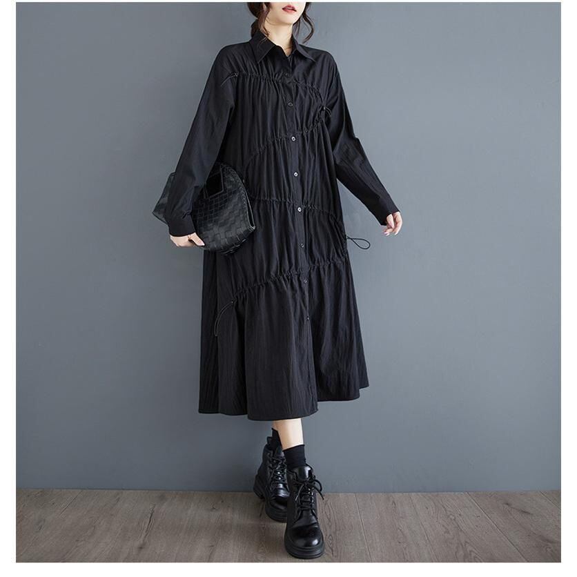 この秋ワンピースは、スタンドカラーとAラインのデザインが魅力的で、大人の洗練スタイルを演出しています。ゆったりとしたシルエットが美しいラインを作り、快適な着心地を提供します。長袖で膝下丈なので、秋冬のコーディネートにぴったりです。