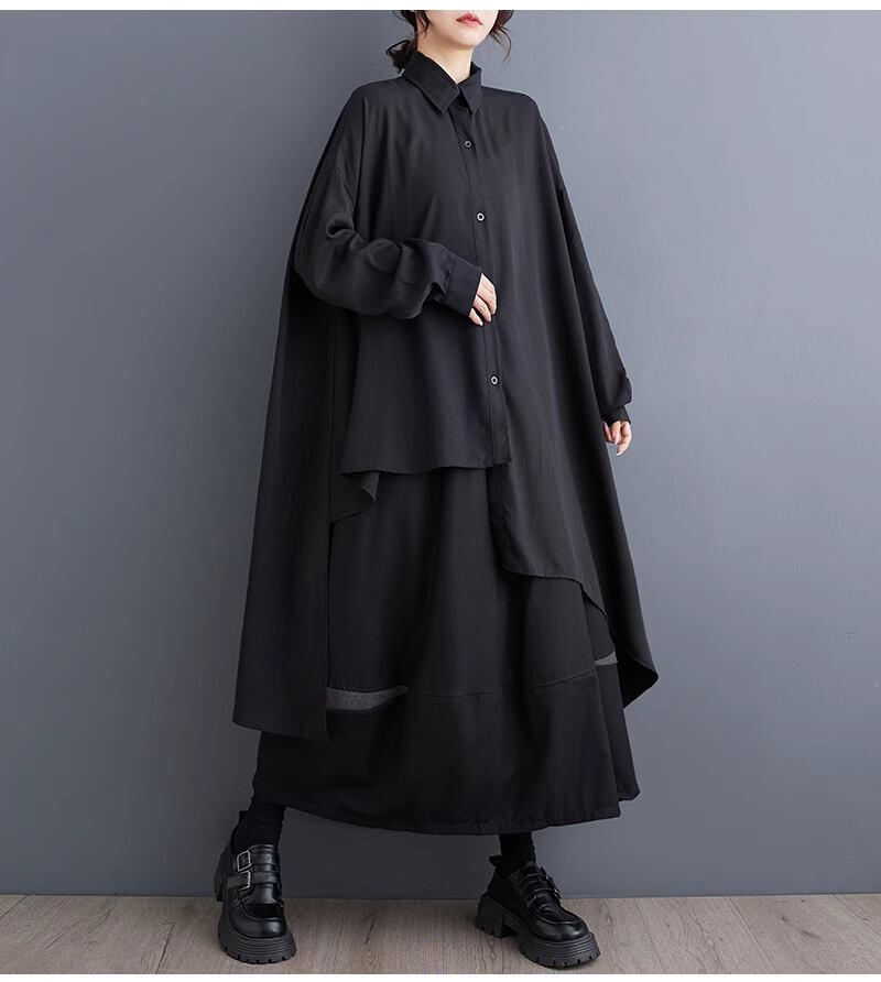 【EEOOOJP】モード系 ファッション 個性的なデザイン 大きいサイズ 秋冬 新スタイル ダーク 不規則 ニッチ ワンピース シャツドレス ファッション ロングシャツドレス ジャケット
