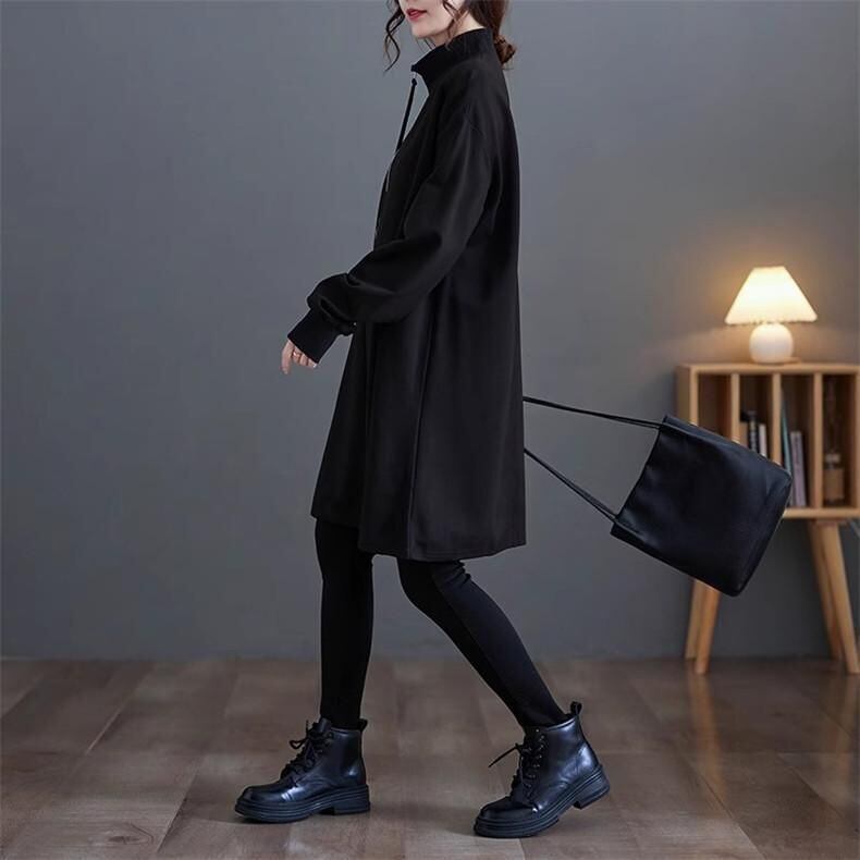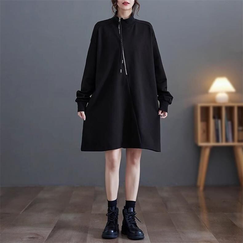 シンプルながらお洒落なデザインが魅力的なこのワンピースは、年齢を問わず長く愛用できるアイテムです。膝上丈で、全体的にゆったりとしたシルエットが身体のラインを美しく見せてくれます。袖は長袖のため、肌寒い秋冬の季節にもぴったり。着回しもしやすく、シーンを選ばずご使用いただけます。デイリールックからちょっとしたお出かけまで、幅広いコーディネートが楽しめます!