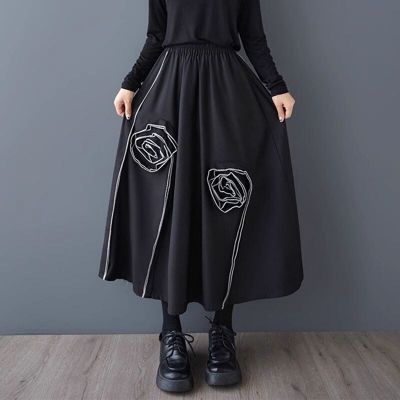 【EEOOOJP】モード系 個性 新レトロスタイル 黒スカート デザイン 立体ローズ レース 個性派 イベント衣装