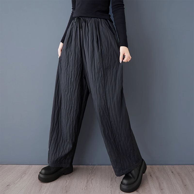 【EEOOOJP】モード系 秋冬 新 緩い ダークブラック 綿 裏生地あり ベルベット 細工 垂直 弾性ウエスト 二重層 カジュアルパンツ