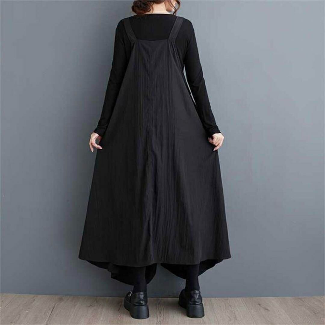 【EEOOOJP】モード系 サロペット ゆったりサイズ 個性 ジャンパースカート キャミワンピ Aライン ブラック 体型カバー