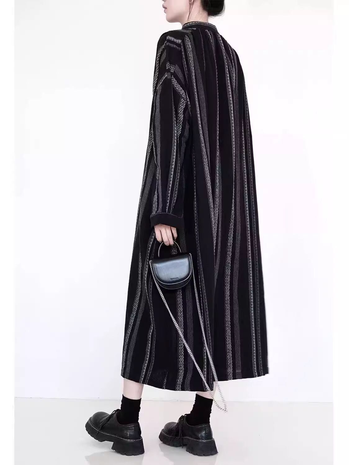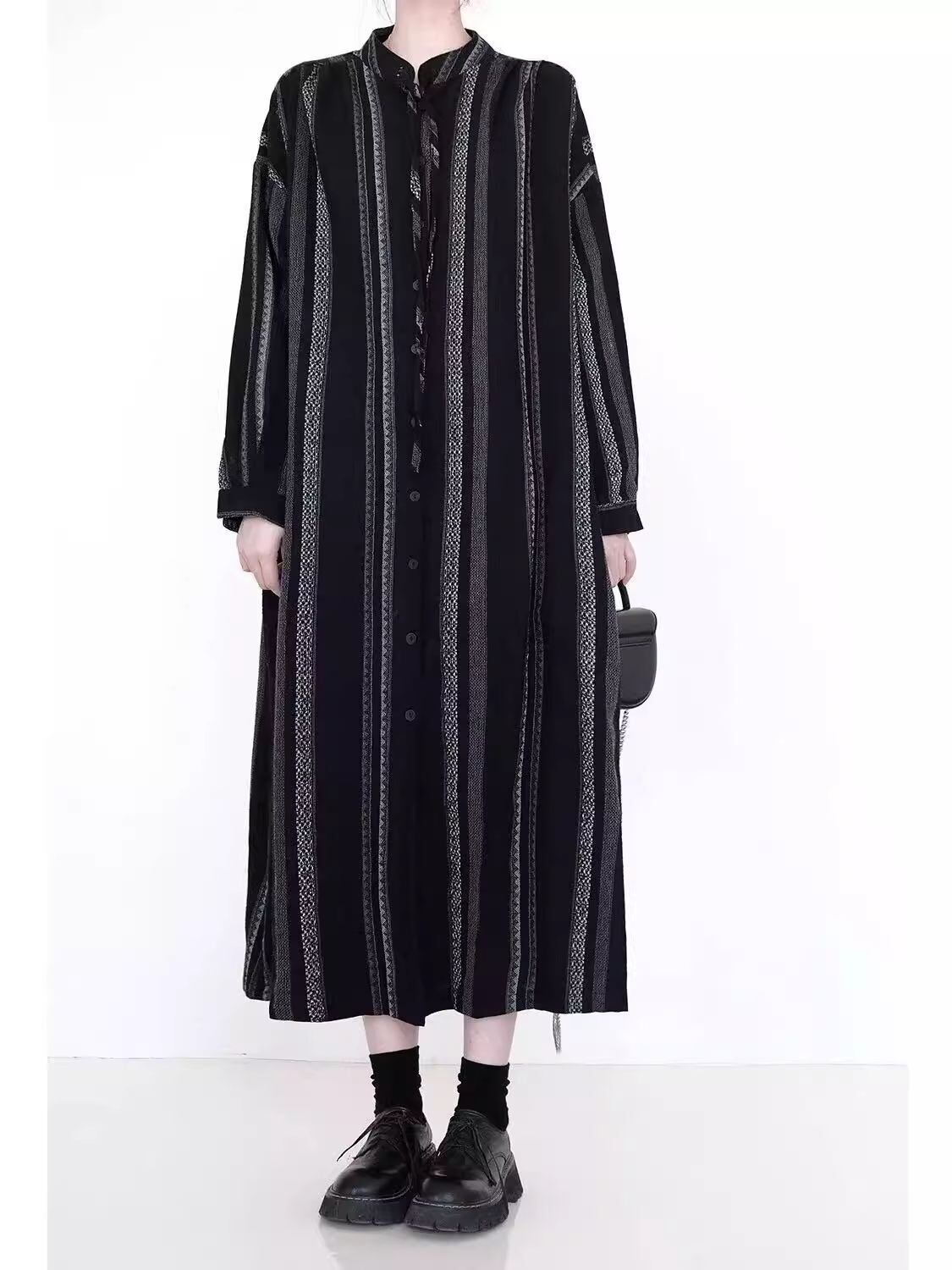 【EEOOOJP】【先行販売】モード系 春物 ダーク 個性 彩り オリジナル ニッチデザインセンス 芸術的 ストライプ コットンとリネン シャツスカート 配色 ロングワンピース ゆったりとした ストラップドレス ロングスカート