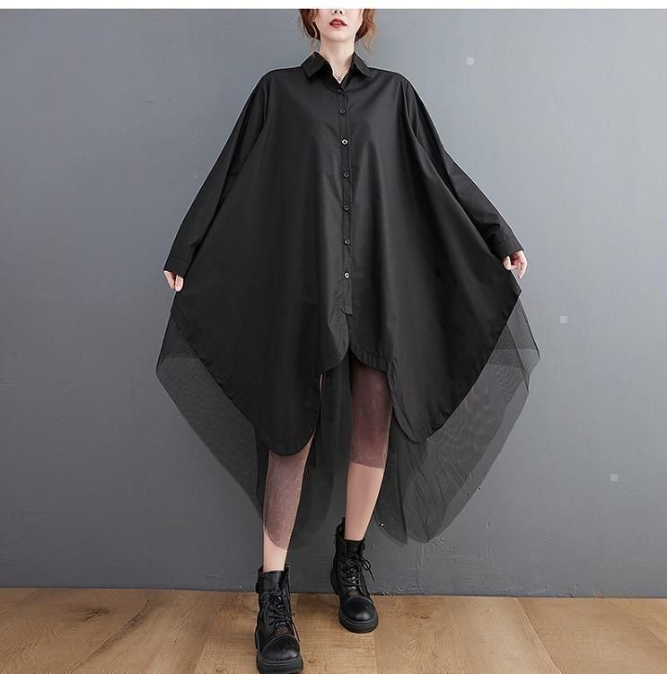 【EEOOOJP】モード系 大きいサイズ レディース 秋冬 フラボア パメオポーズ ザラ リミフゥ シャツ ワンピース アシメ 長袖