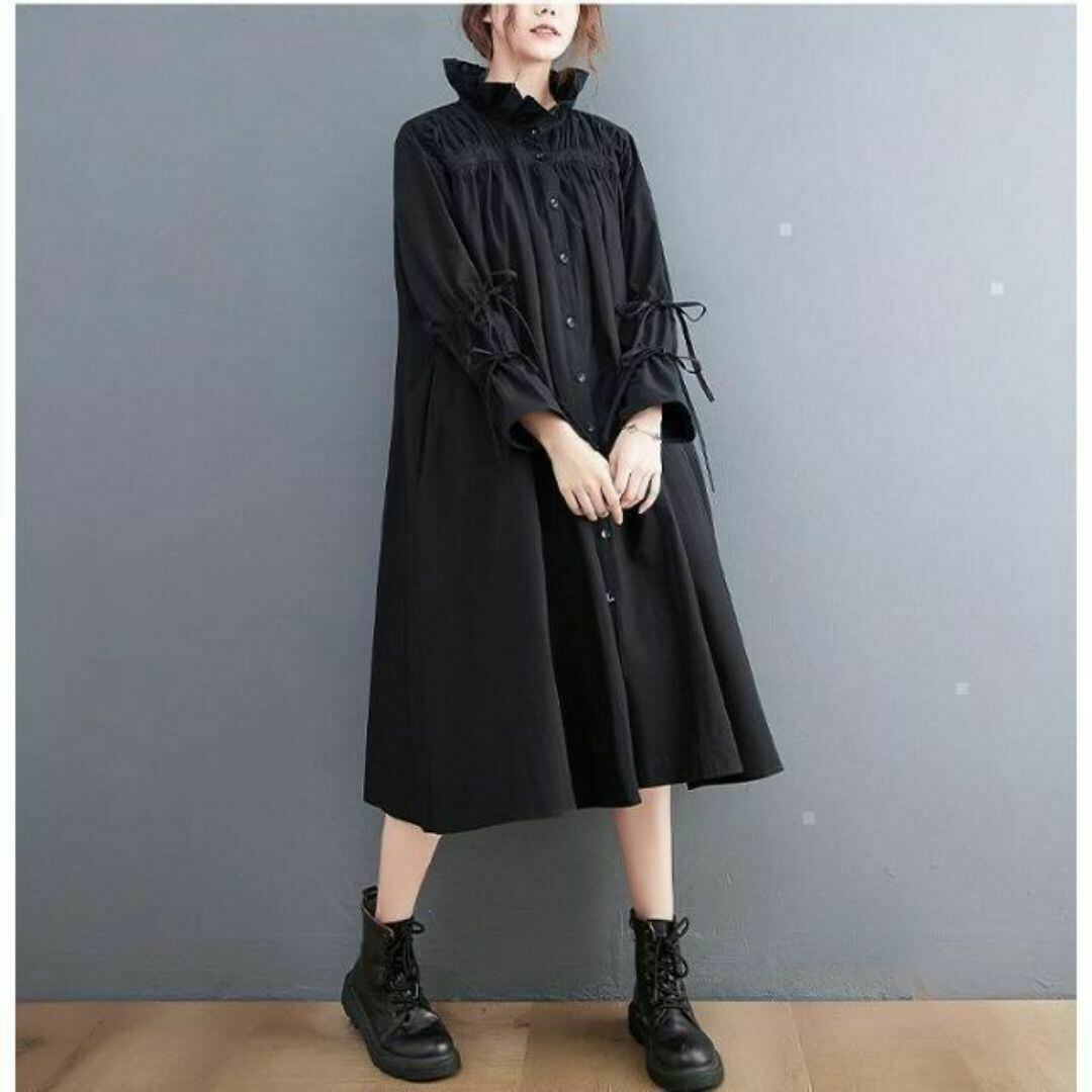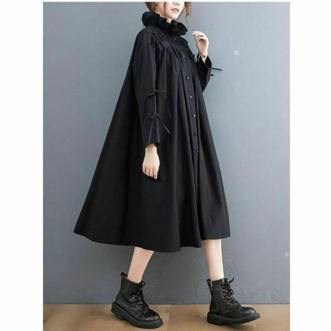 【EEOOOJP】モード系 大きいサイズ レディース 秋冬 ニューデザイン スタンドカラー ワンピース 春ワンピース イベント衣装 個性派 長袖シャツワンピース シャツ 長袖FREE SIZE